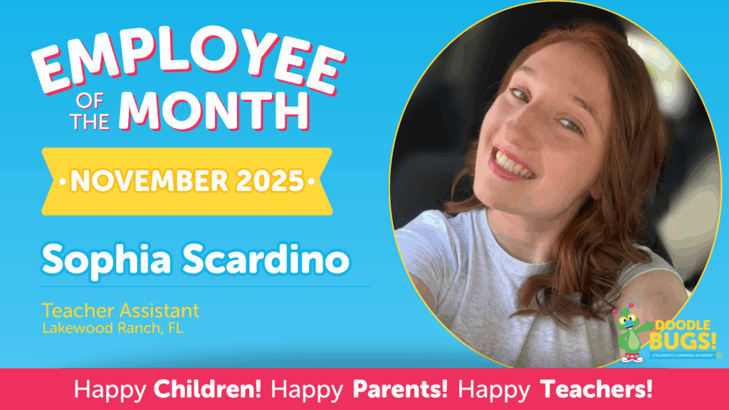 We are excited to recognize Sophia Scardino as our November Employee of the Month! Sophia joined Doodle Bugs! in September 2022 as a part-time Teacher Assistant while completing her Bachelor’s degree in Education. She successfully balanced her academic responsibilities with her role at the center, demonstrating dedication to both her professional growth and the children we serve.